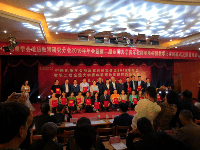 2019年10月25-27日,由中国地质学会、教育部高等学校地质学专业教学指导委员会、教育部高等学校地质类专业教学指导委员会、中国地质学会地质教育分委会主办的“第二届全国大学青年教师地质课程教学比赛”在东华理工大学(南昌)举行。本次大赛吸引了南京大学、中国地质大学(北京)、浙江大学、吉林大学等80余所院校的130多名教师同台竞技,江西应用技术职业学院青年教师路思明荣获比赛二等奖、青年教师李定华荣获比赛三等奖。资环学院院长朱忠教授作为比赛评判专家组成员参加了本次比赛。