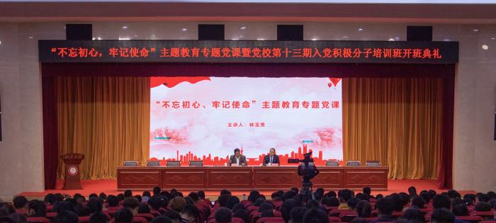 11月7日下午,山东工程职业技术大学“不忘初心、牢记使命”专题党课暨第十三期入党积极分子学习班开班仪式在山东工程职业技术大学诚基楼学术报告厅举行,山东工程职业技术大学副校长林玉贵运用生动实例阐述大道理,为山东工程职业技术大学党员和入党积极分子上了一堂别开生面的党课。