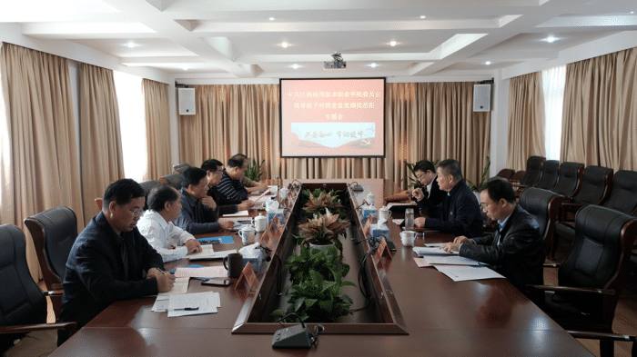 10月31日下午,江西应用技术职业学院在行政楼四楼党委会议室召开领导班子对照党章党规找差距专题会议。省委第十巡回指导组副组长熊铭,成员邱文文、叶维伟到会指导。江西应用技术职业学院领导班子成员陈庐生、徐有华、陈传胜、罗诗文、甘宏礼、胡堪东参加会议。会议由党委书记陈庐生主持。